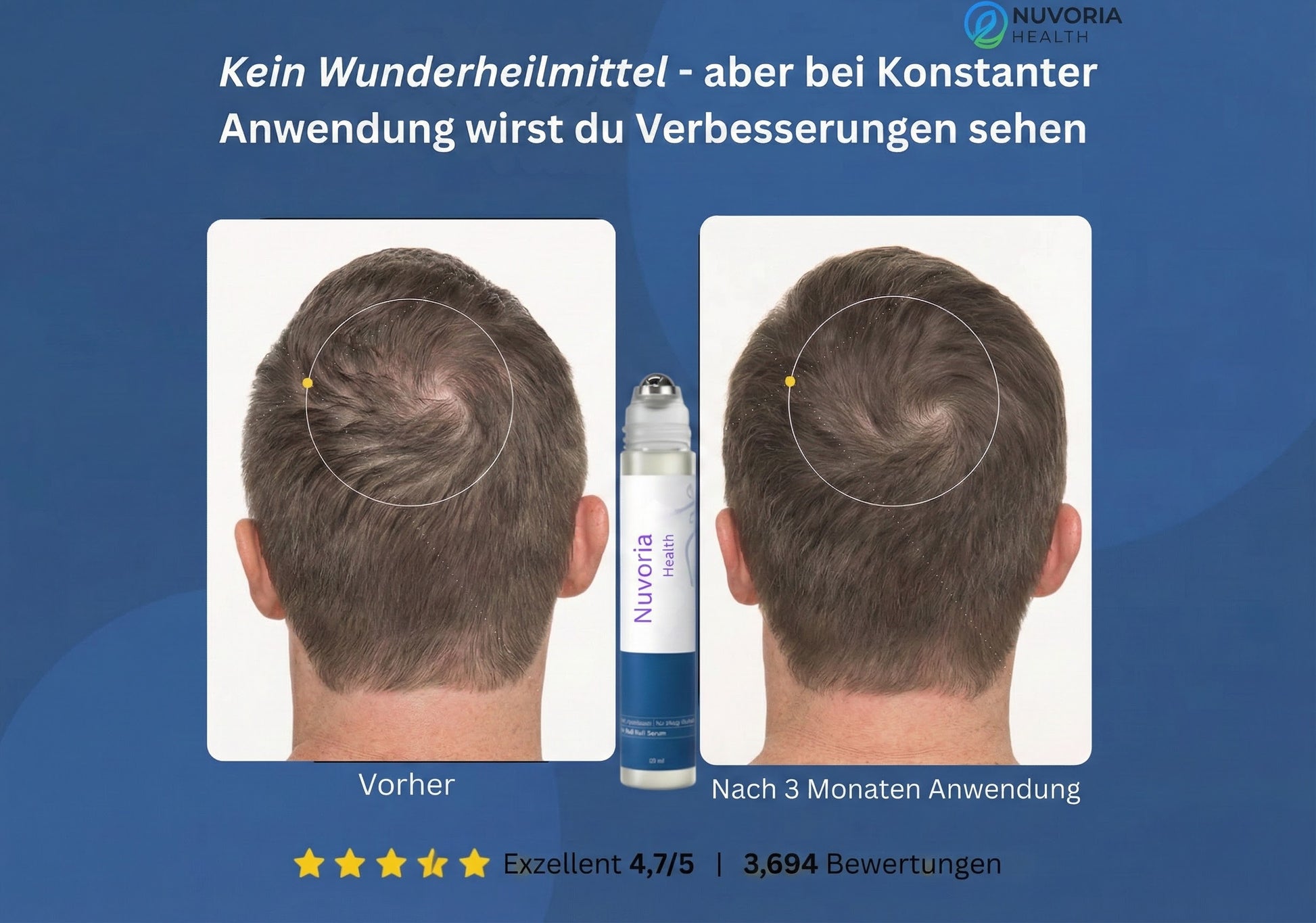 „Klinische Daten der letzten Jahre zeigen deutlich, dass moderne Wirkstoffkomplexe wie Redensyl, Anagain und Aminexil das Haarwachstum in der aktiven Phase unterstützen und Haarausfall spürbar reduzieren können. Besonders Rosmarinöl wirkt zusätzlich entzündungshemmend und verbessert die Durchblutung der Kopfhaut – eine perfekte Kombination für sichtbare Ergebnisse. Basierend auf aktuellen dermatologischen Studien empfehle ich Formeln, die genau diese Wirkstoffe enthalten. Die Synergie sorgt dafür, dass Haarfollikel wieder aktiviert werden und das Haar dichter, stärker und gesünder nachwächst.“